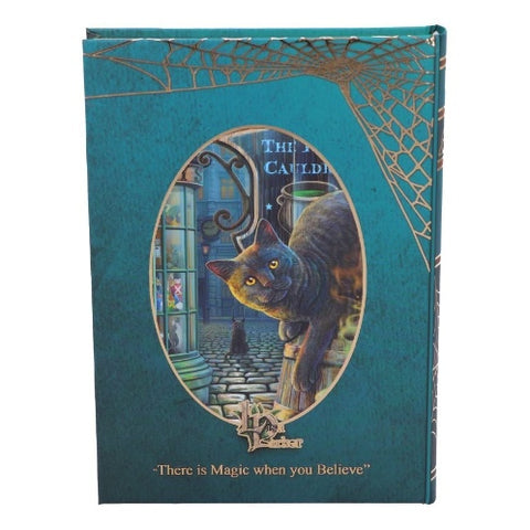 Discover the magic of Lisa Parker's enchanting 'Rusty Cauldron' artwork on this beautiful hardcover journal. The front cover features the full illustration enhanced with luxurious gold-foiling, while the back displays the original image elegantly framed in an oval. Measuring 7 x 5 inches, this notebook contains premium sketch book quality plain paper, perfect for sketching, writing, or journaling. A gold-coloured ribbon bookmark is attached for convenient page marking. Inspired by a charming tavern nestled on a cobbled street, this journal brings whimsical storytelling and artistic beauty to your daily creative practice.