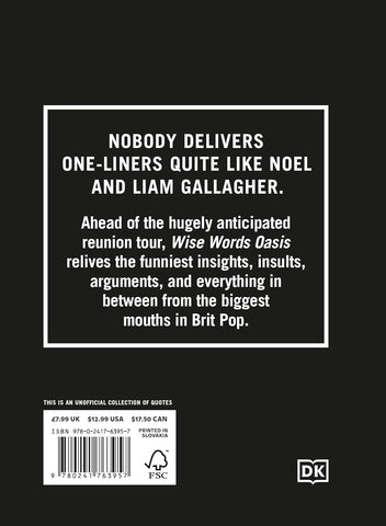 Celebrate the legendary wit and chaos of Britpop's most infamous brothers with this entertaining collection of Oasis quotes. Packed with Noel's razor-sharp insults, Liam's hilarious life advice, and their most memorable clashes, this book captures the humour and attitude that defined a generation. Perfect for fans counting down to the 2025 reunion tour, it's a timeless gift that proves the Gallaghers are just as entertaining off-stage as they are on it. A must-have for anyone who loves witty one-liners and rock and roll banter.