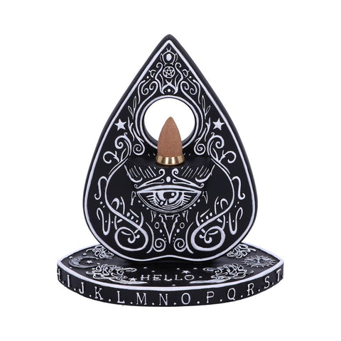 Summon the spirits of style with this enchanting Spirit Board Planchette Backflow Incense Burner. Crafted from premium resin and hand-painted with a striking black and white design, this 15cm mystical masterpiece transforms your space into a séance-worthy sanctuary. Watch mesmerising smoke cascade like ghostly whispers through the planchette. Each piece is uniquely hand-painted by Nemesis Now artisans, ensuring no two burners are identical. Perfect for those who appreciate the supernatural with a touch of gothic glamour.