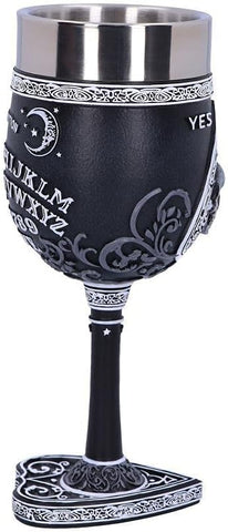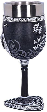 Raise a glass to the supernatural with this enchanting Spirit Board Goblet. Featuring a striking black and white spirits design, this conversation piece showcases a distinctive planchette base that sets it apart. Meticulously hand-painted and cast from premium resin, each goblet is a work of art. The removable stainless steel insert is dishwasher safe for hassle-free cleaning, so you can focus on the spirits—not the washing up. Perfect for séance enthusiasts and quirky collectors alike.