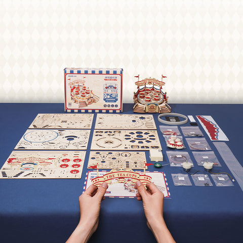 Spin into fun with this enchanting Tilt-A-Whirl Music Box 3D Wooden Puzzle! Featuring 280 interlocking wooden pieces, this challenging build brings the magic of a classic fairground ride to life. Watch mesmerised as the teacups tilt and twirl while delightful music plays. Perfect for puzzle enthusiasts aged 14 and up, it's a rewarding 6-hour journey that culminates in a stunning 224×197×185mm display piece. Ideal for decorating shelves, gifting to creative minds, or simply enjoying the nostalgic charm of a handcrafted carnival classic.